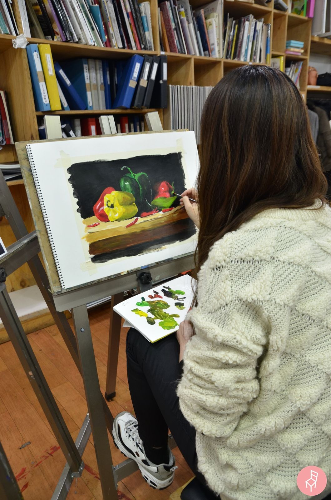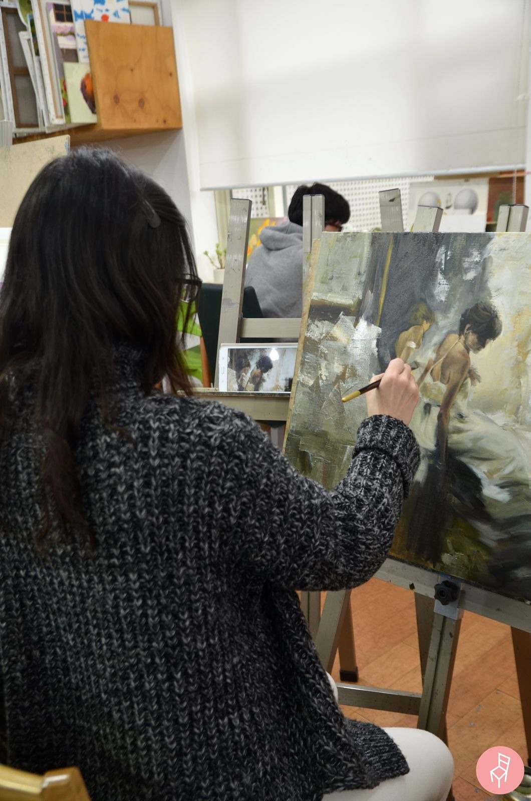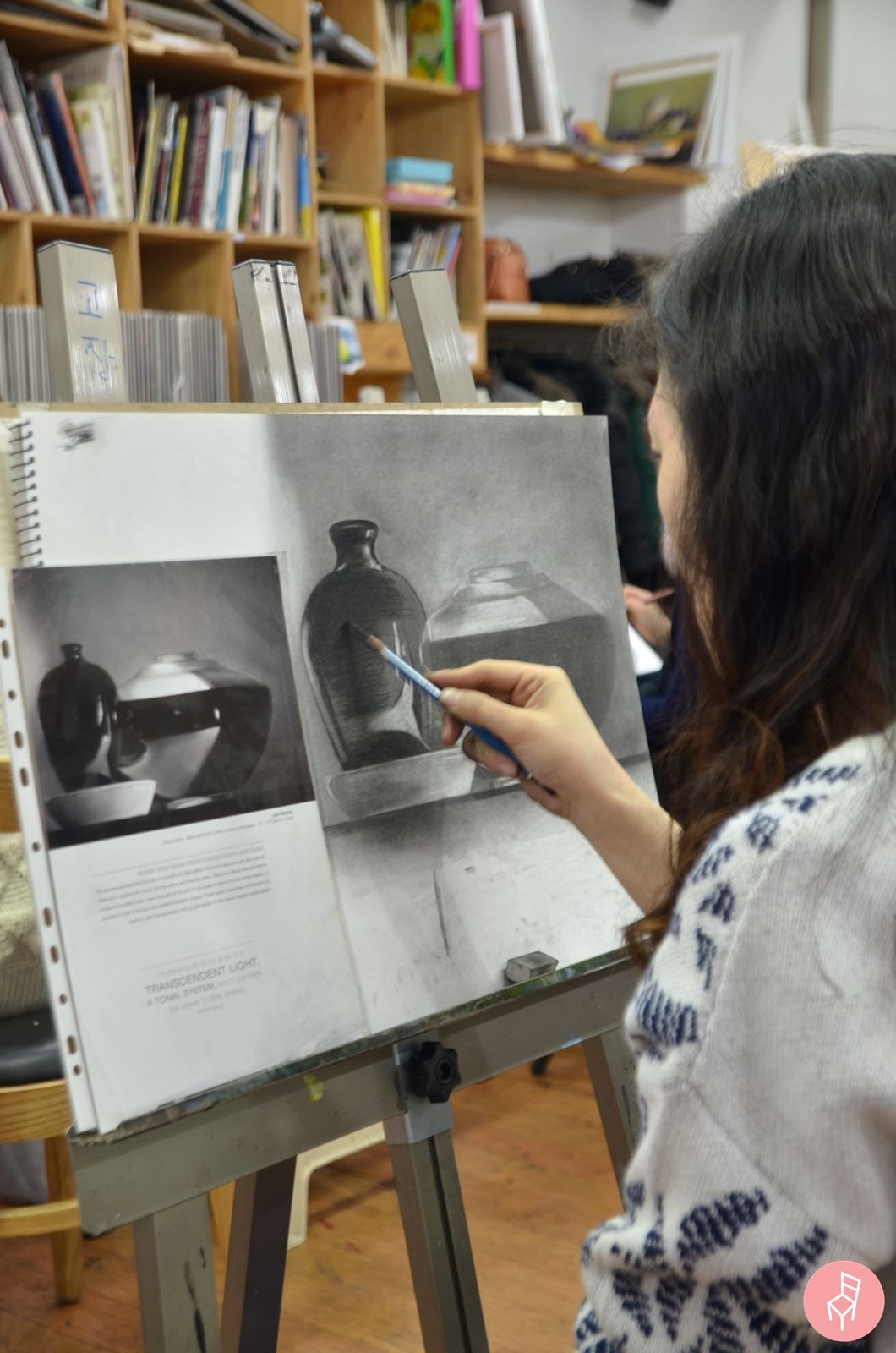 실기실 안쪽에서는 정물화 작업을 진행하는 여성 회원분이 계셨습니다.