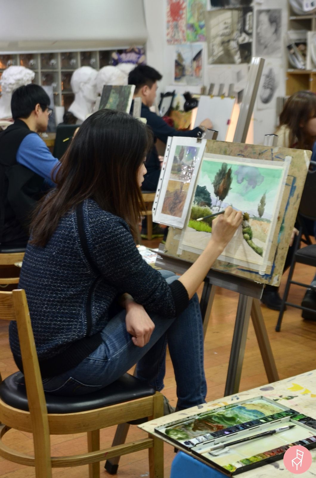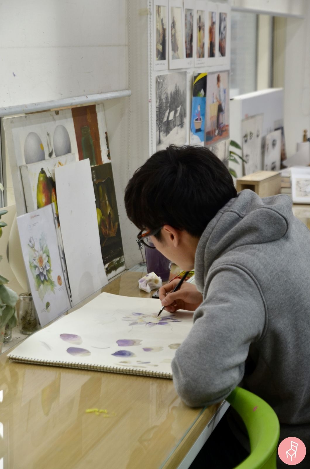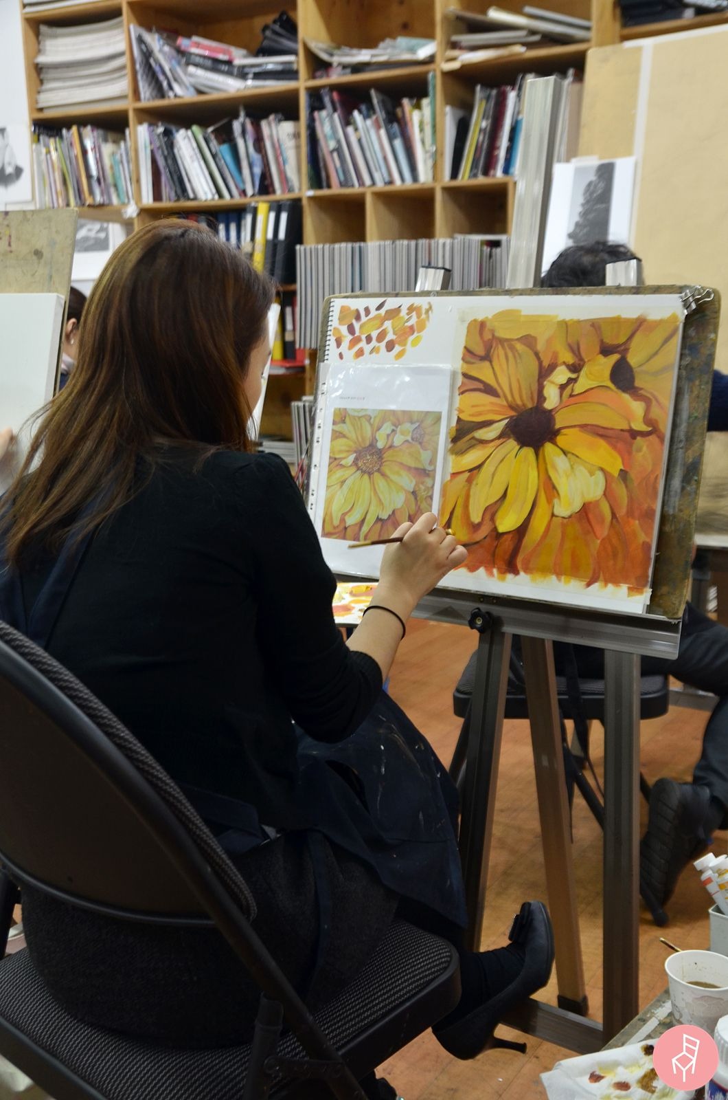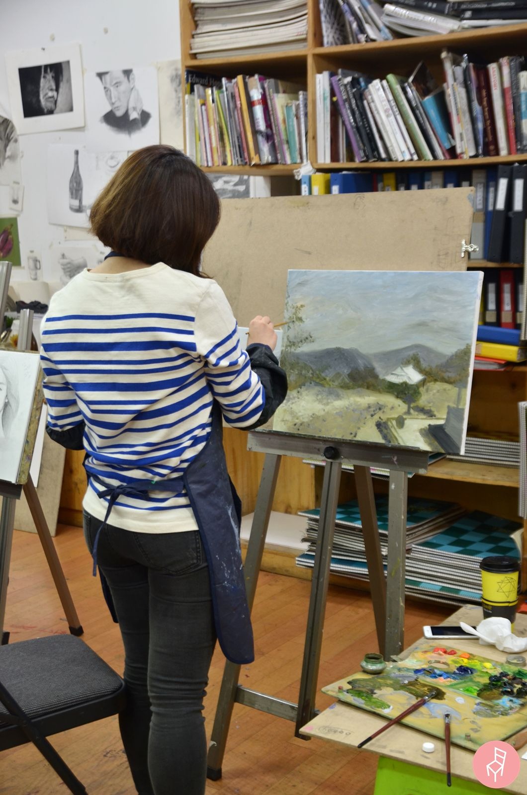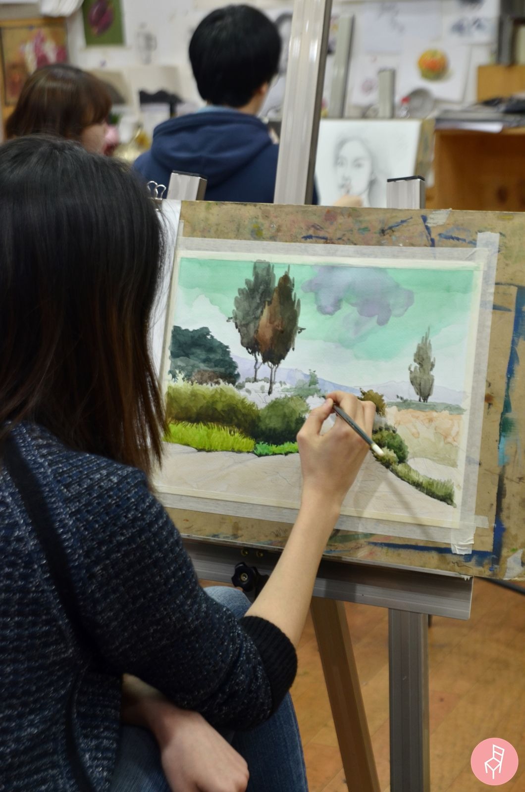 오늘 저녁반 수업에는 자연 풍경을 작업하는 두 여성 회원님이 계셨습니다. 유사하게 보이는 풍경 작업이었지만, 두 회원님의 작업 스타일은 상반되었는데요. 두 작업의 대조적인 모습이 인상적이라 사진에 담아봤습니다.