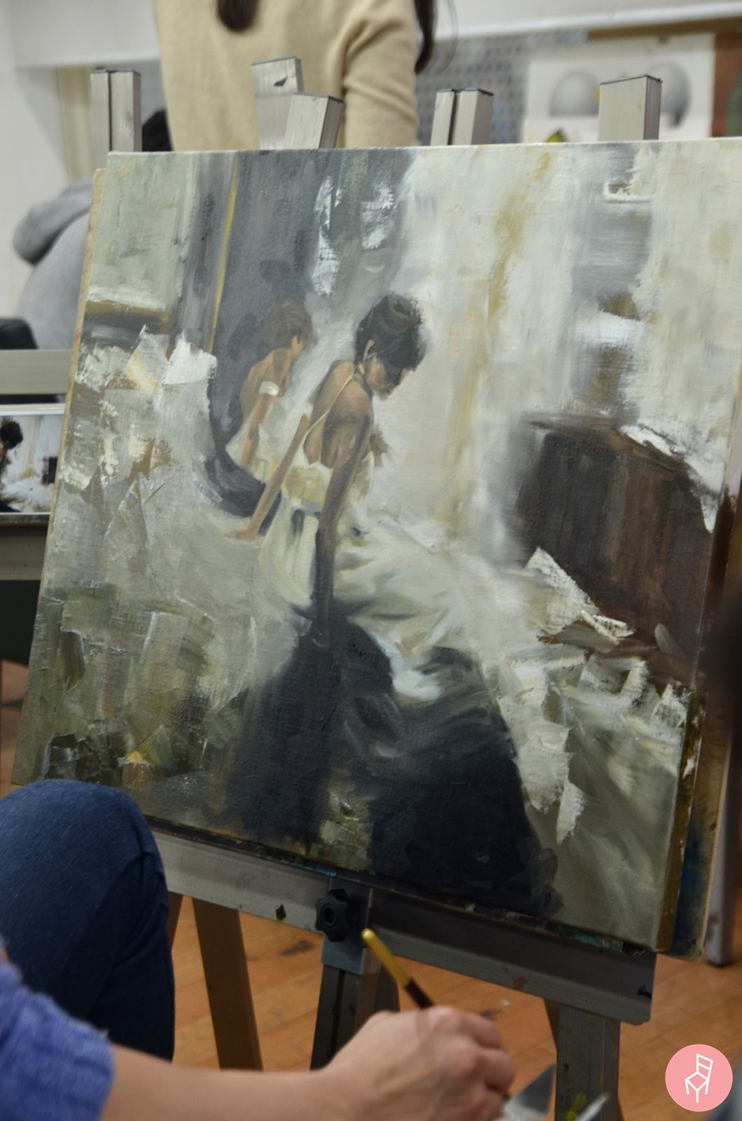 오늘 거의 완성된 작품도 있었는데요. 멀리 충청도에서 주말에 단 하루, 그림을 그리러 좋은자리 취미미술학원에 나오시는 여성 회원님의 작품입니다. 이 분은 지난 1월부터 약 2달 동안 작업에 매달리셨는데요. 일주일에 작업할 수 있는 시간이 단 3시간에 불과하기 때문에 더욱 집중해서 작업을 진행하셨습니다.