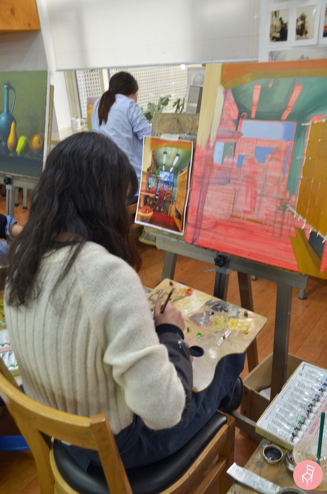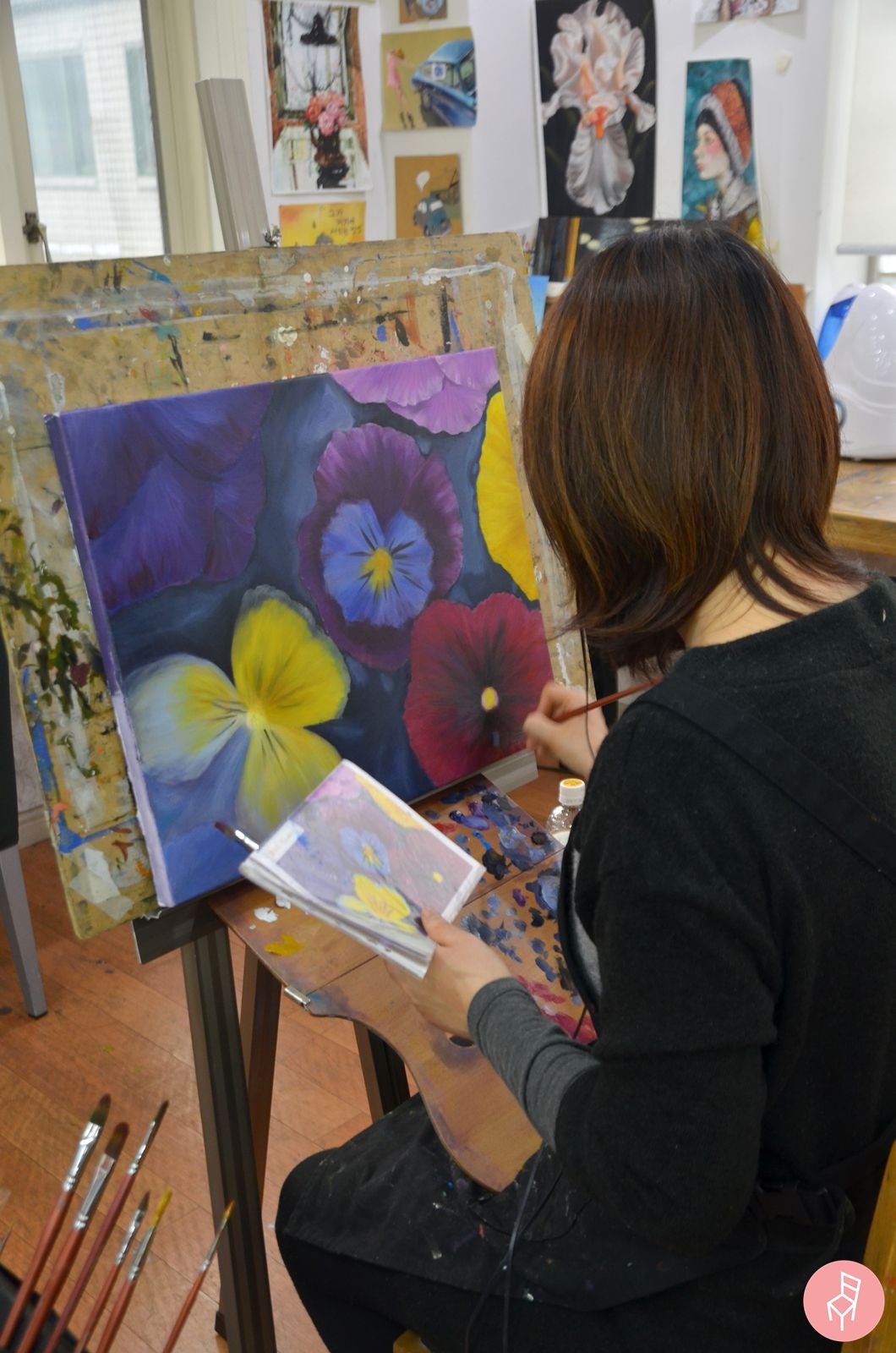 이 여성 회원님은 지난 1월 24일 처음으로 수업을 시작하셨어요. 그러니까 한달 조금 넘게 좋은자리 취미미술학원에서 그림을 그리신 건데, 정말 잘하시더라고요. 무엇보다 색을 맛깔나게 사용하는 모습이 예사롭지 않았습니다. :)