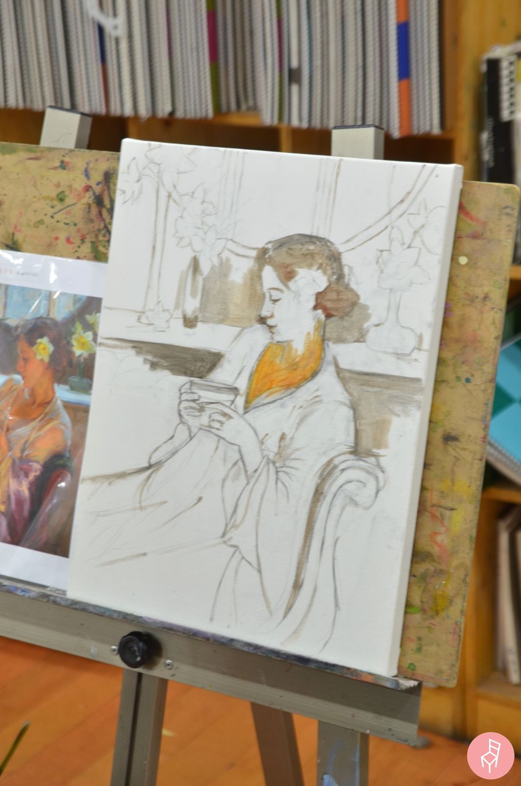 스페인의 유명 화가, 라몬 카사스의 'Woman Getting Ready to Meet the Day'를 모작하는 회원님도 계셨습니다.